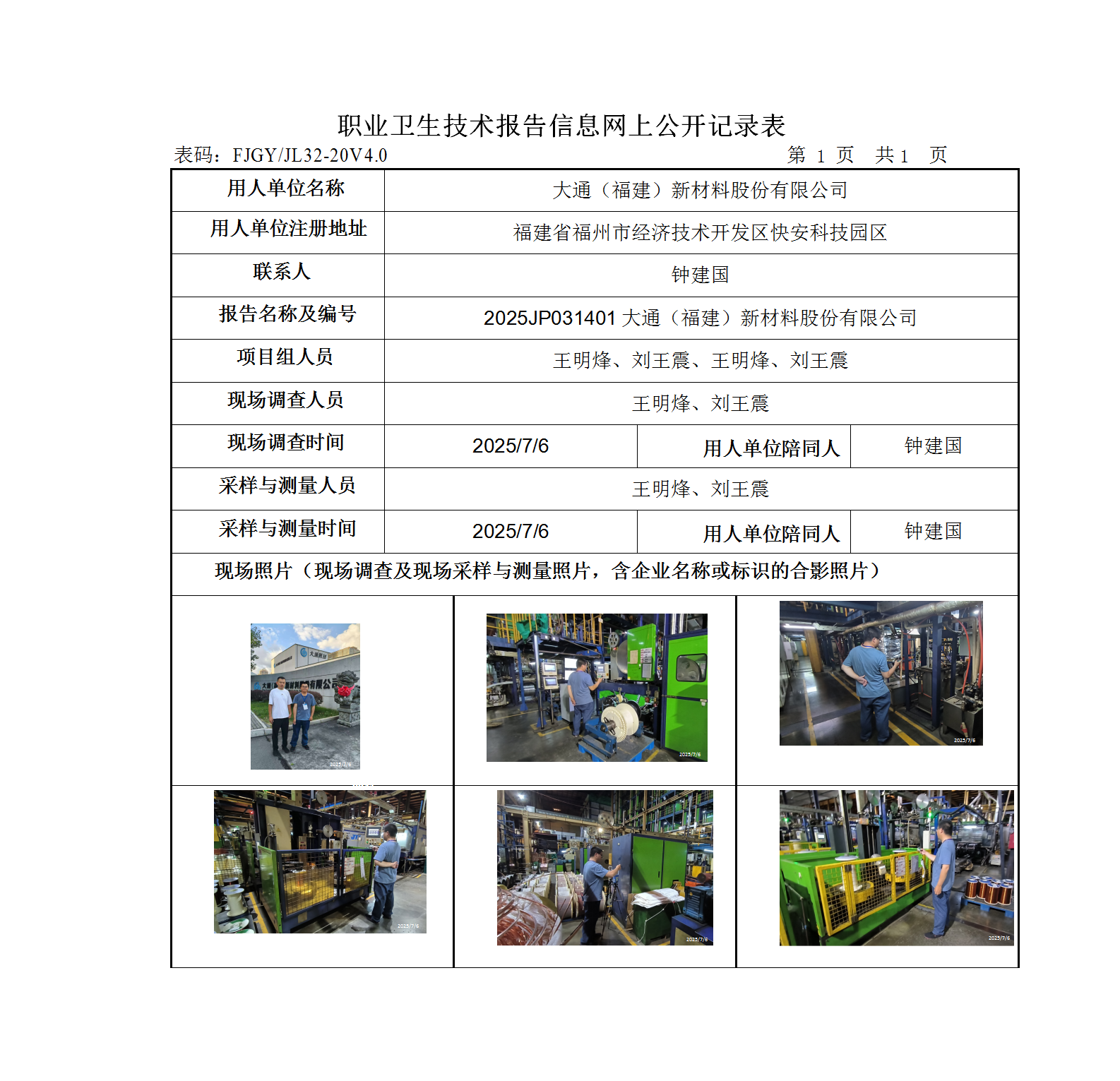 大通(福建)新材料股份有限公司-2025年工作場所職業(yè)病危害因素檢測