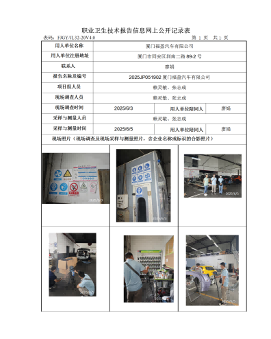 廈門福盈汽車有限公司-2025年工作場所職業(yè)病危害因素檢測