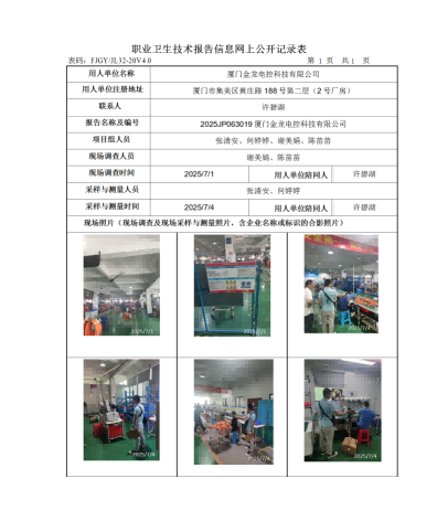 廈門(mén)金龍電控科技有限公司-2025年工作場(chǎng)所職業(yè)病危害因素檢測(cè)