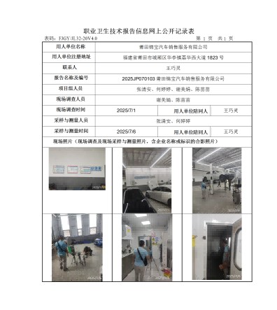 莆田錦寶汽車銷售服務(wù)有限公司-2025年工作場(chǎng)所職業(yè)病危害因素檢測(cè)